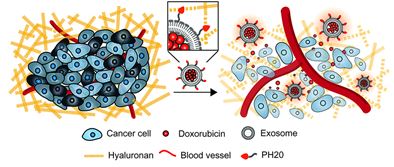 연구진은 세포외기질의 주된 성분인 ‘히알루론산’을 분해하는 효소인 히알루로니다아제(PH20)를 엑소좀의 막에 결합해, 효소 엑소좀을 개발.